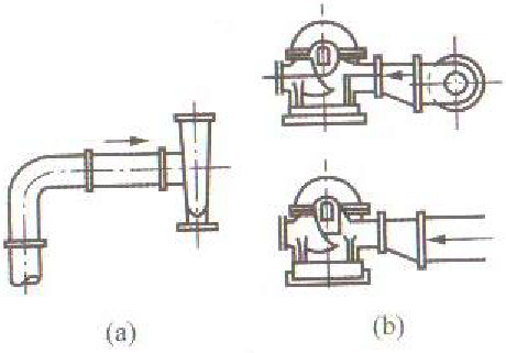 (a)進(jìn)水管與水泵進(jìn)口直徑一致;(b)進(jìn)水管直徑大于水泵進(jìn)口直徑